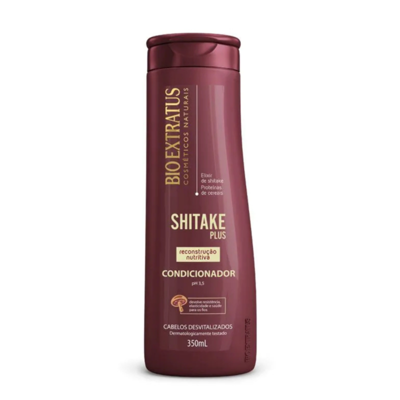 Modo de Usar: Após lavar os cabelos com shampoo, aplique o Condicionador Shitake Plus por toda a extensão dos fios, massageando suavemente. Deixe agir por alguns minutos. Enxágue. Use também os outros produtos da linha Shitake Plus.